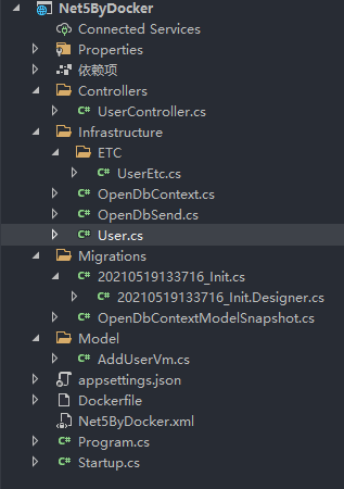 新建一个net5 WebAPI程序,当前程序主要包含一个用户控制器(包含用户信息的增删改查)并且连接MySQL数据库。