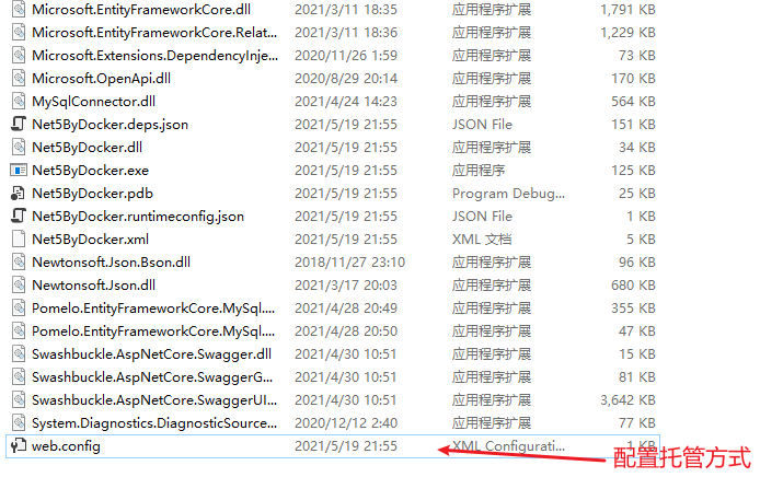 为了正确设置 ASP.NET Core 模块,web.config 文件必须存在于已部署应用的根路径中。里面可以设置一些环境、日志等配置。