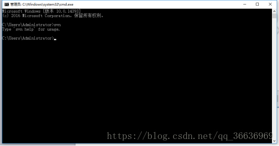 如果完成会有如上图提示,同时在上面步骤中选择使用命令行的用户也可以通过命令行查看,win+R 进入命令行输入cmd 弹出命令行提示框,输入svn 弹出如下提示说明已安装成功。