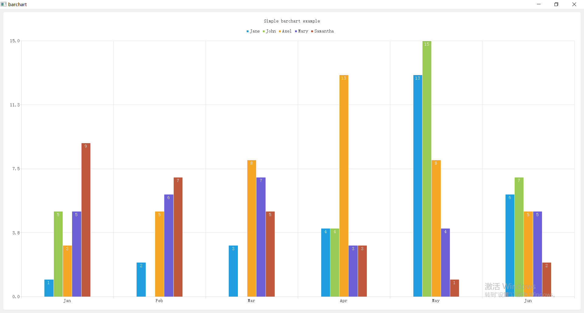 categories << "Jan" << "Feb" << "Mar" << "Apr" << "May" << "Jun";  //保存横坐标字符串的列表