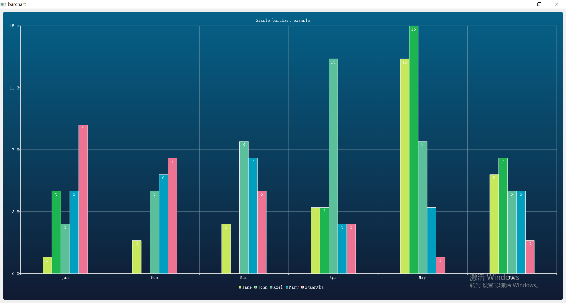 到此这篇关于Qt创建并显示柱状图的方法的文章就介绍到这了,更多相关Qt 柱状图内容请搜索自学编程网以前的文章或继续浏览下面的相关文章希望大家以后多多支持自学编程网!