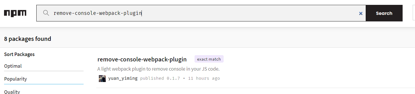 上传成功后,到 npm 官网上搜索,看看是否能搜到插件;