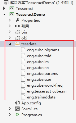 有一点要注意的是,tesseract的识别语言包要自己下载后包含到项目里面,并设置为始终复制,或者直接把这个文件包放到运行程序目录(bin\debug)下: