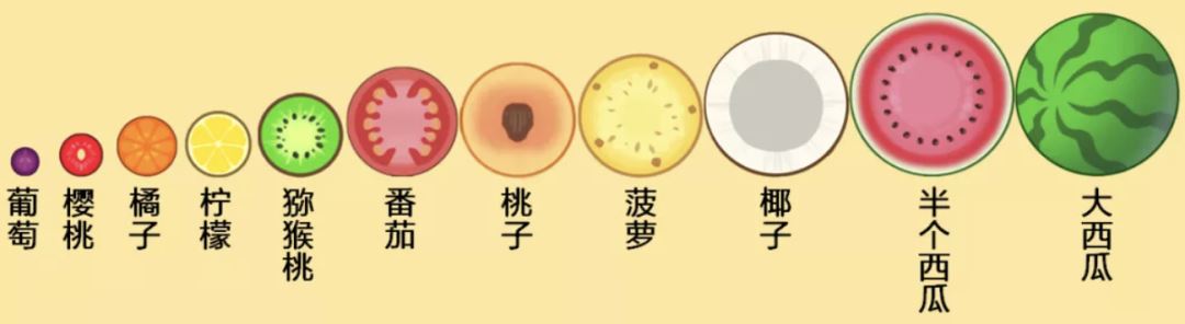 游戏里面总共有11个水果,两个相同水果的合成一个较大的水果,最终合成一个大西瓜便不能继续合下去了: