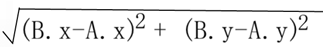 那么此时的向量就是,那么他们的内容就是(B.x-A.x,B.y-A.y),当我们对向量取绝对值时,就是求A坐标到B坐标的长度,也就是: