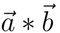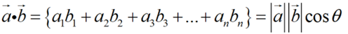 $\vec{a}* \vec{b} = \left | \vec{a} \right | cos\theta$