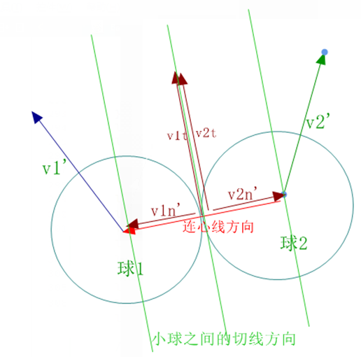 - v1n和v1t : 是球1在连心线方向和切线方向上的投影速度