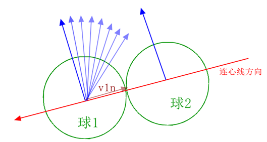 假如球1和球2在平行移动,那么他们与连心线的夹角恰好是90°, v1n和v2n则都为0
