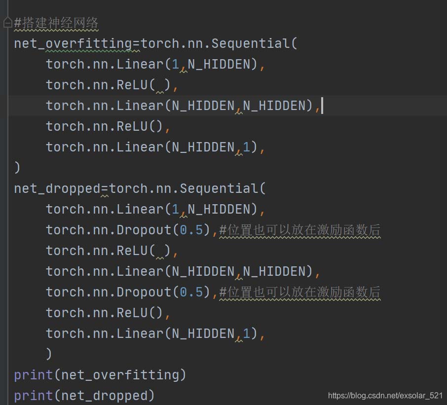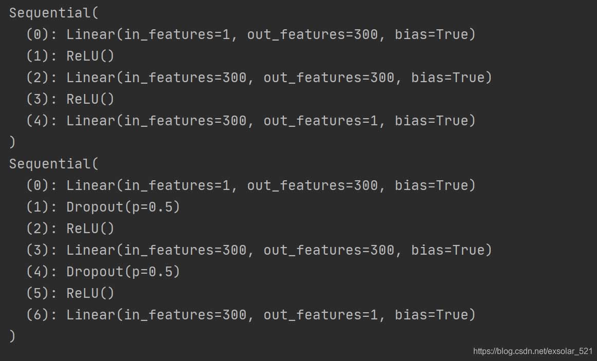 可以看到,在eval模式下,由于dropout未生效,每次跑的结果不同,利用apply函数,将Dropout单独设为train模式,dropout就生效了。