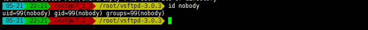 • 在默认配置下 vsftpd 需要使用 nobody 用户