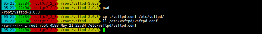 • 拷贝新的配置文件到 /etc/vsftpd 目录