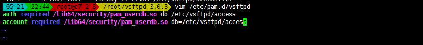 auth required /lib64/security/pam_userdb.so db=/etc/vsftpd/access
