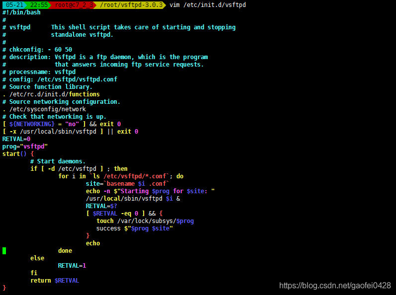 编写 vsftpd 启动 脚本:/etc/init.d/vsftpd