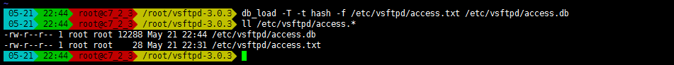 • db_load -T -t hash -f /etc/vsftpd/access.txt /etc/vsftpd/access.db