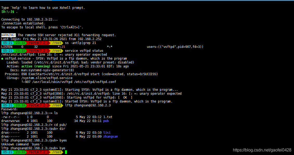 • 启动 vsftpd