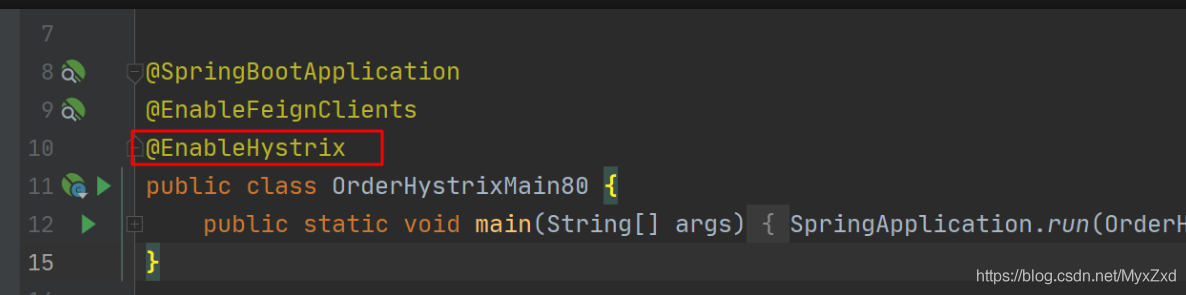 2. 添加支持: 在启动类上添加@EnableHystrix