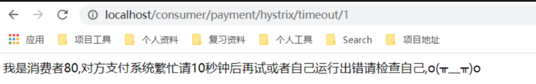 return "我是消费者80,对方支付系统繁忙请10秒钟后再试或者自己运行出错请检查自己,o(???)o";