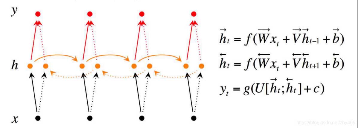 重点要看蓝色的部分,即反向的状态值对应的是原始数据中最其实的序列输入。因为是反向RNN,在反向循环时,是会把序列中最后的放在最前面,所以反向网络的生成结果就会与最开始的序列相对应。