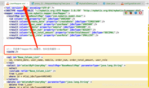 单个mapper配置,主需要在需要开启二级缓存的mapper.xml文件中加入以下配置即可开启
