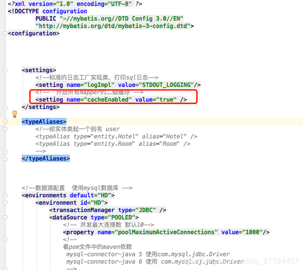二级缓存是全局的,也就是说;多个请求可以共用一个缓存,二级缓存需要手动开启,有2种方式配置二级缓存,