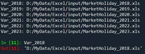 year = [2018,2019,2020,2021,2022,2023] file_path = 'D:/MyData/Excel/input/MarketHoliday_' #注意:这里一定要用单引号