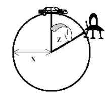 有一条圆形公路,半径为X个单位。Noder的家在这条公路上,有一个超市也在这条公路上。家和超市所形成的圆心角为Z度。