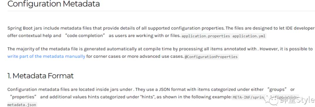 在SpringBoot官方文档中提到了关于元数据的配置