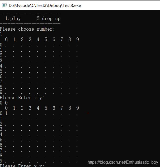我们还可以在Print()函数中加上system("cls"),此函数为清屏操作,加上后就是在一张棋盘下棋了,还可以改进输出棋子的内容,如将