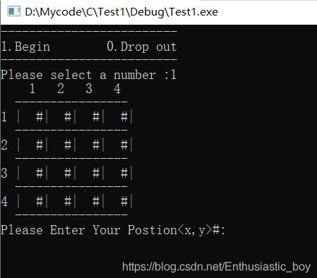 4.显示游戏界面的函数为Display() ,不适用数组边框,所以i和j的起始数字为1,刚好对应数组下标。代码如下: