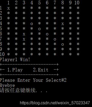 生成棋盘玩家1与玩家2对战,哪个玩家率先有连续5子连线,哪个玩家赢。