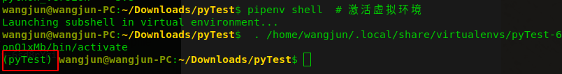 环境经激活后,会发现命令提示符变了(上图中的“pyTest”前缀,表示生成了名为“pyTest”的虚拟环境)