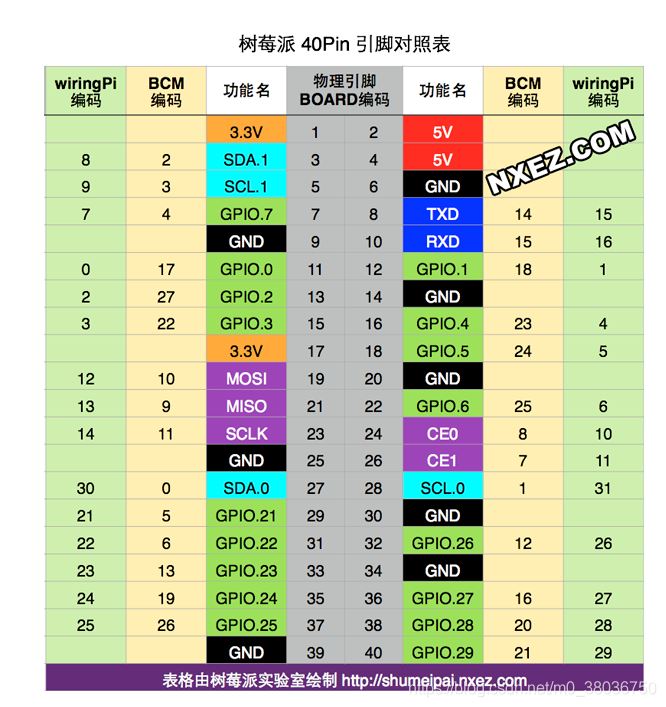 然后找一张树莓派GPIO的图,对照GPIO图写代码了。