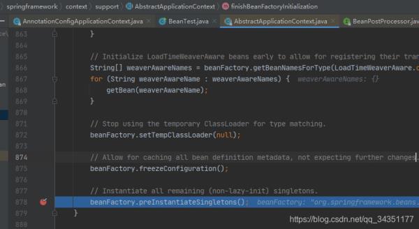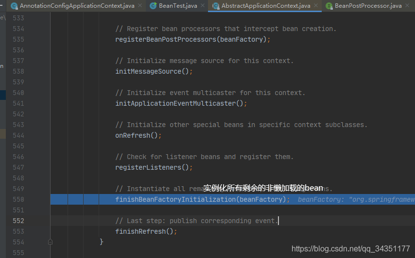 3.进入到finishBeanFactoryInitialization方法