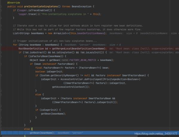 4.进入preInstantiateSingletons方法