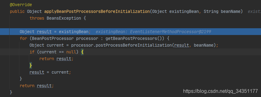 System.out.println("初始化前"+beanName);