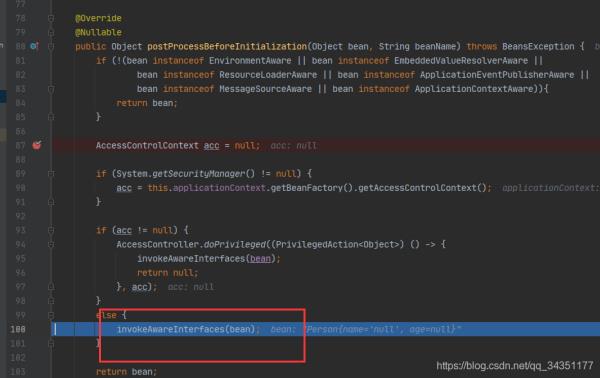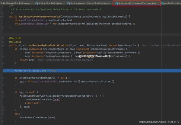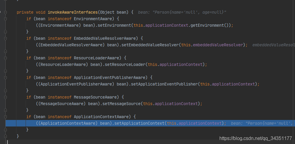 11.进入invokeAwareInterfaces(bean);方法