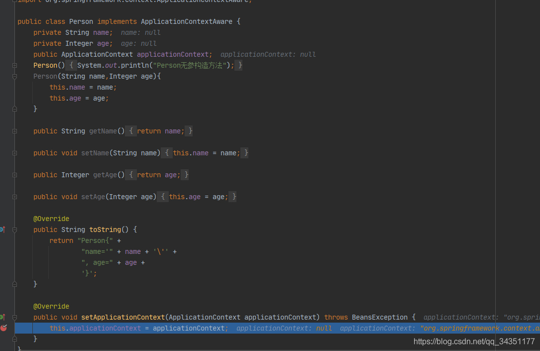 12.走到Person类中的setApplicationContext方法