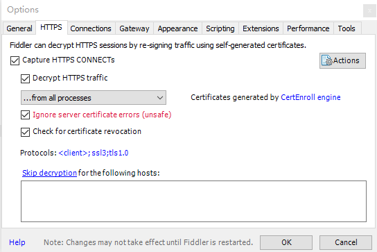 记得重启Fiddler重启Fiddler重启Fiddler!不然可能不生效