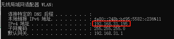 首先看一下安装Fiddler主机ip(电脑和手机必须处于同一局域网