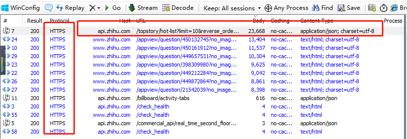 这样我们获取的数据包列表就都是过滤条件内的目标网址