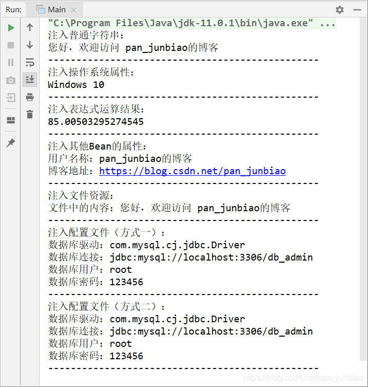 System.out.println("数据库连接:" + environment.getProperty("jdbc.url"));
