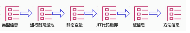 • 方法区用于存储已被虚拟机加载的类型信息、常量、静态变量、即时编译器编译后的代码缓存等。