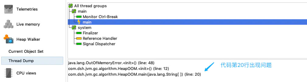 at com.dsh.jvm.gc.algorithm.HeapOOM.main(HeapOOM.java:20)