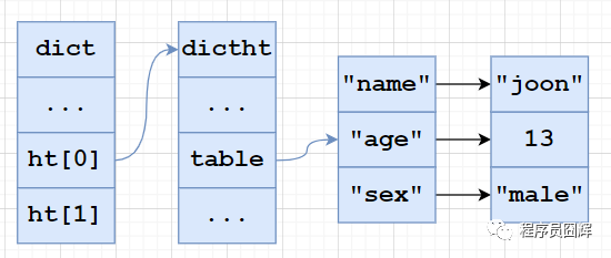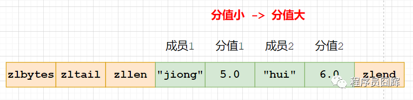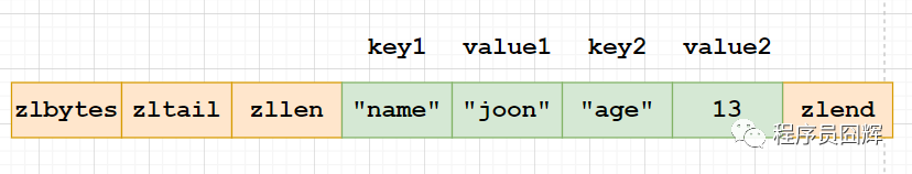 因此:1)保存了同一键值对的两个节点总是紧挨在一起,保存键的节点在前,保存值的节点在后;2)先添加到哈希对象中的键值对会被放在压缩列表的表头方向,而后来添加的会被放在表尾方向。