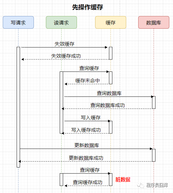 结论:通过上述案例可以看出,先操作数据库和先操作缓存都会存在脏数据的情况。但是相比之下,先操作数据库,再操作缓存是更优的方式,即使在并发极端情况下,也只会出现很小量的脏数据。