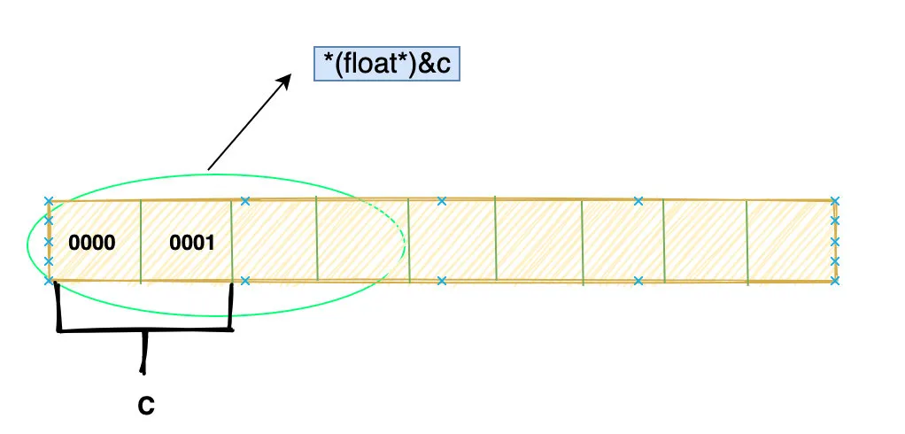 c 这里有 4 个byte,所以需要四个单元格来存储: