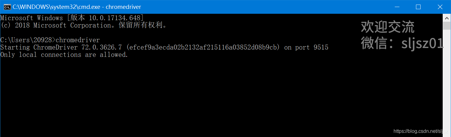 完成安装后,我们到cmd界面, 输入chromedriver,如果下方给出了chromedriver的版本号,说明已经安装成功。