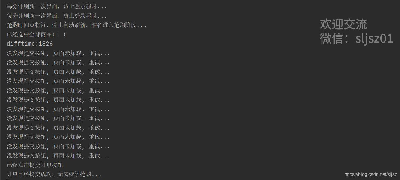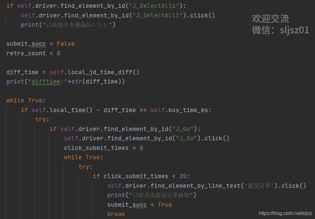 第三步,通过chromedriver选中购物车全部商品,将本地时间与淘宝服务器时间校准,以淘宝服务器返回时间作为标准时间,一旦淘宝时间到达我们抢购的时间,立即从购物车提交订单。此时有两种情况,如果我们提交订单的任务发送的太早,提交订单按钮还没有出现,此时我们重复提交订单步骤,一直到按钮出现;另一种情况,提交订单按钮在我们发送提交请求的时候已经可用了,那么直接提交成功。