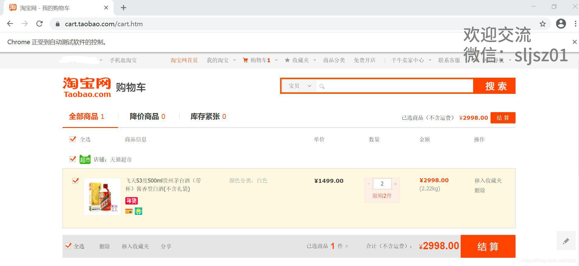 临近抢购时间,程序选中购物车商品,并在抢购时间到达时,自动点击结算、提交订单。