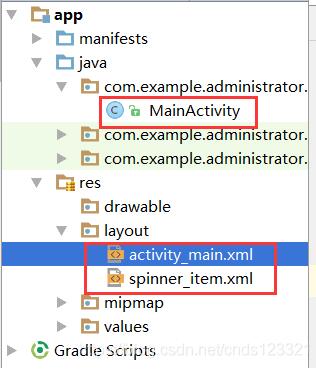在activity_main.xml中布局一个下拉列表框Spinner